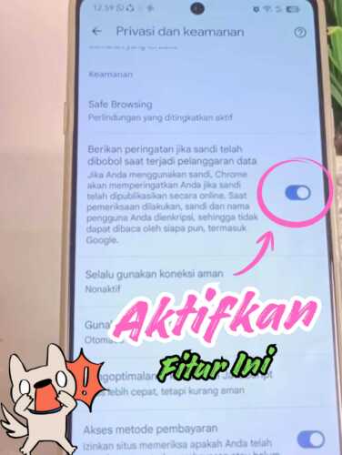 Aktifkan tombol pada fitur “Selalu gunakan koneksi aman”