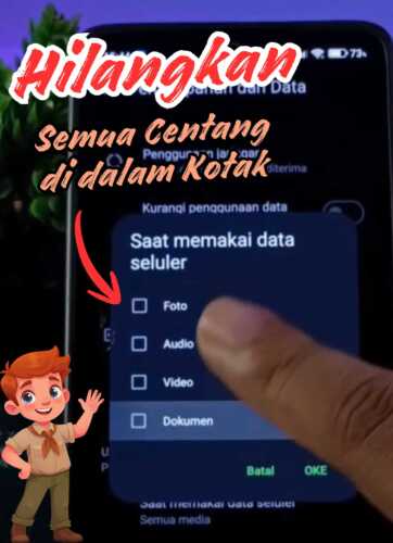 Hilangkah semua centang pada opsi foto, audio, video, dan dokumen