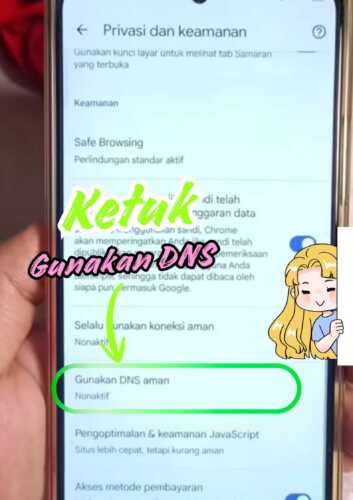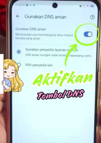 Aktifkan tombol “Gunakan DNS aman”