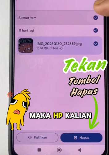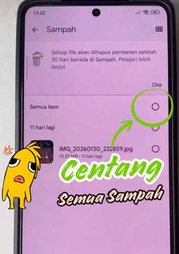 Centang lingkaran pada “Semua item” untuk menghapus semua sampah